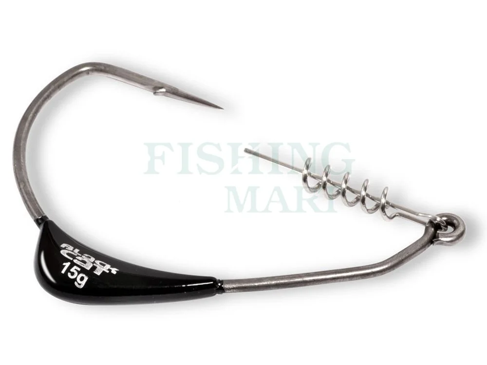 Black Cat Mega Offset Hook to idealny hak do łowienia miękkimi przynętami w bardzo zarośniętych, pełnych zaczepów wodach. Wyjątkowo długi wkręt przymocowany jest do oczka, co pozwala na użycie nawet bardzo dużych, ciężkich gum i zapobiega przed rozrywaniem się przynęty. Hak Mega Offset Hook jest dostępny w jednym rozmiarze (12/0) i trzech gramaturach: 10g, 15g i 20g. Ołowiane obciążenie, które przymocowane jest do trzonka haczyka, umożliwia stabilną pracę przynęty przy wolnym prowadzeniu. Ponadto, podczas pauzy w zwijaniu, guma powoli, kusząco opada na dno – tuż przed pyskiem suma!