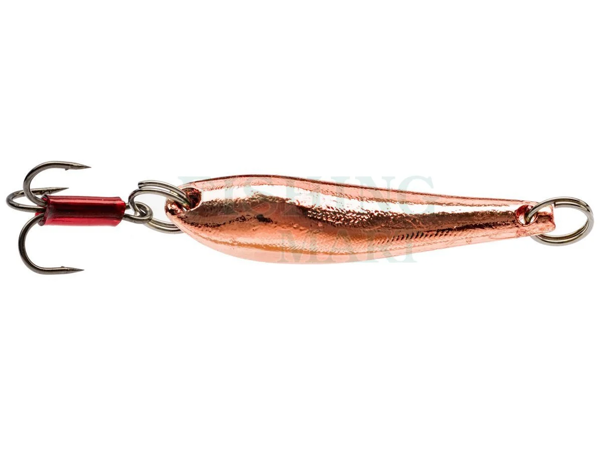 Mocno dociążone i wygrzbiecone na dole przynęty podlodowe. Ich gama barw rozbudowana jest o kolor miedziany. Błystki są średniej ciężkości oraz średnich długości.