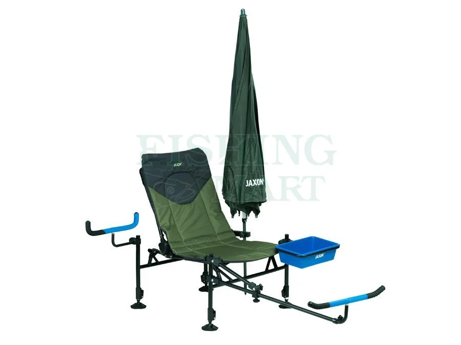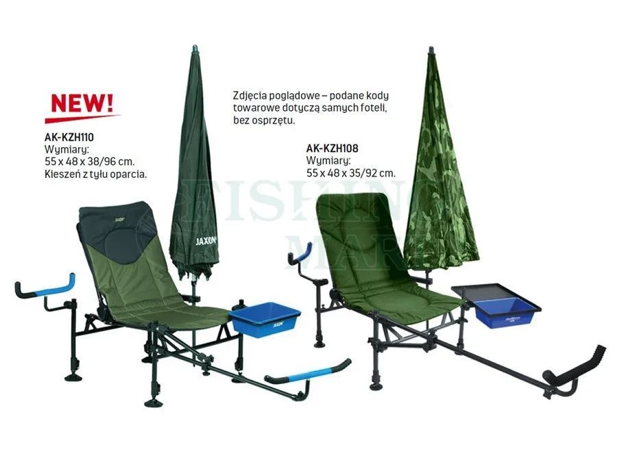 Specjalna konstrukcja nóg fotela, które są rozstawione szerzej oraz posiadają możliwość przymocowania do nich różnego rodzaju akcesorów np. półki na przynęty i akcesoria, miski, podpórki na wędki czy parasola czyni z niego świetne stanowisko, które rozbudujemy według naszych własnych potrzeb.