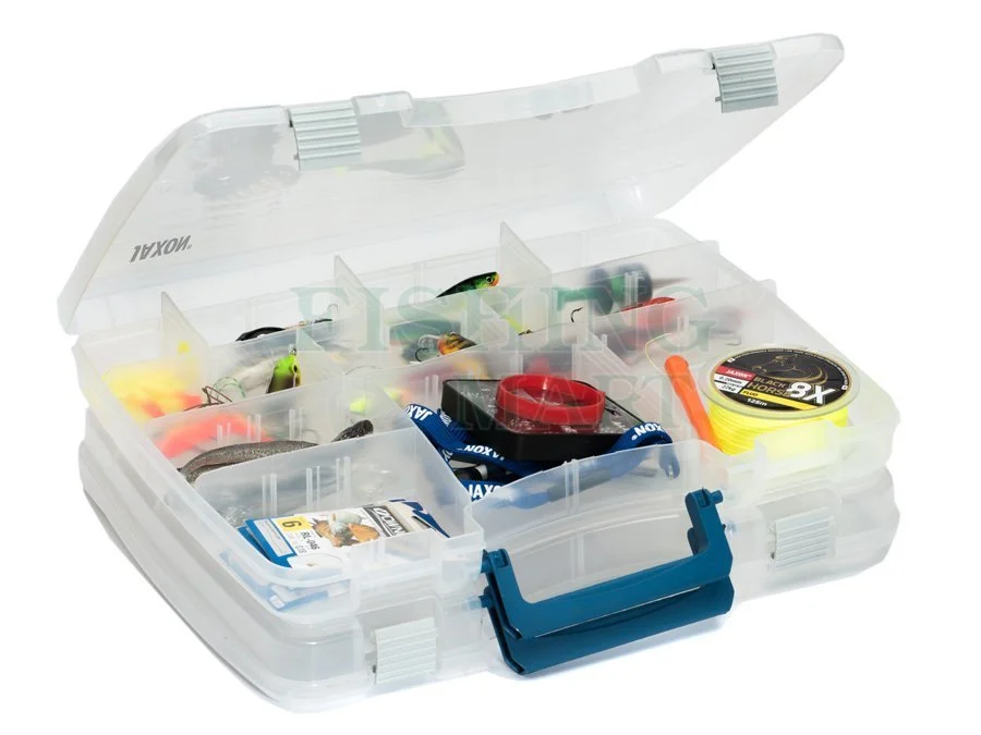 Dwustronne pudełka składające się z dwóch osobnych, łączących się ze sobą pudełek. Każde posiada osobną rączkę i regulowany, przy pomocy przegródek, środek.