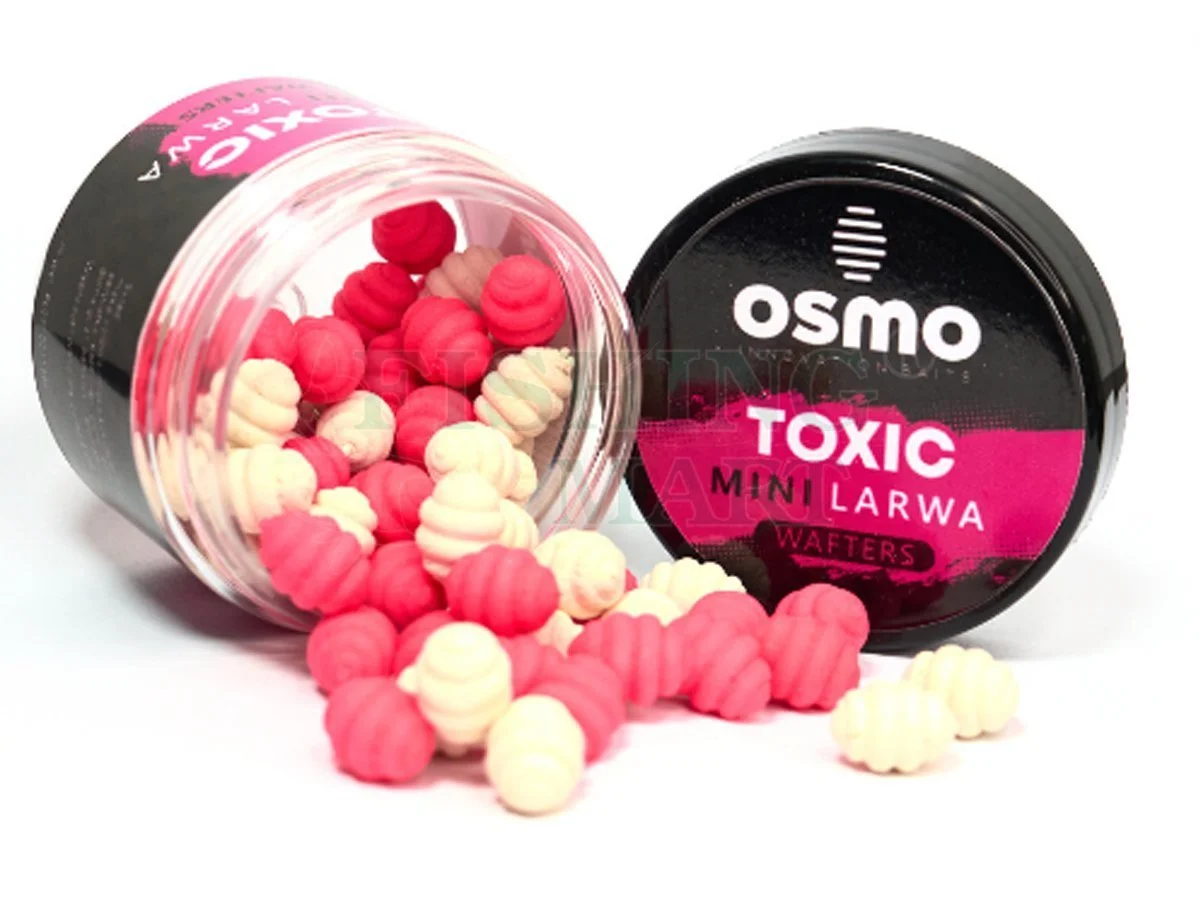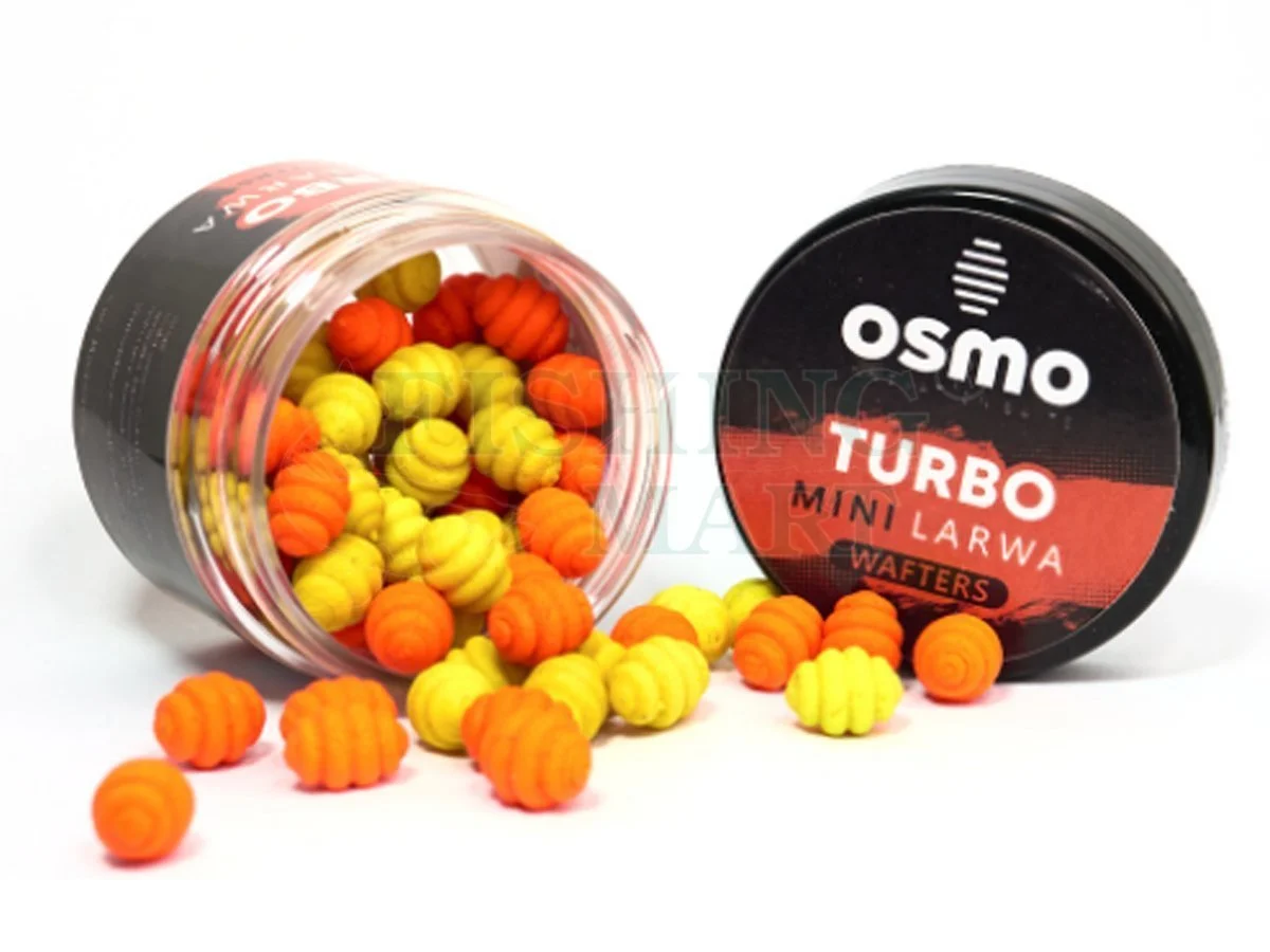 Wszystkie przynęty OSMO Mini Larwa Wafters mają sporą wyporność jak na waftersy, haki które je balansują (ważne: balansujemy larwy hakami nie bagnetami) to rozmiary 8, 10, 12. Wyporność to dla OSMO bardzo ważna sprawa i tym wyróżniamy się na rynku przynęt, uważamy że w naszych wodach, gdzie karpie dorastają do sporych rozmiarów, stosowanie odpowiednio dużych haków to podstawa. Dlatego nasze larwy w kombinacji z hakami o odpowiednich rozmiarach z łatwością wpływają do karpich paszcz, jak baloniki.