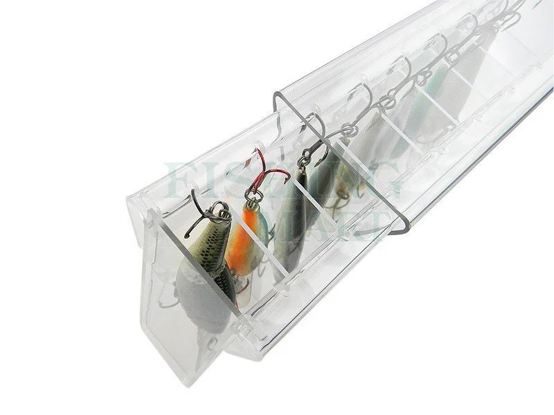 Dzięki specjalnemu projektowi każda przynęta zawieszona jest w indywidualnej w przegrodzie, dzięki czemu nie plącze się z innymi woblerami, jak to bywa w tradycyjnych pudełkach. Dodatkowo nie niszczymy zewnętrznej powłoki woblera, która jest sukcesywnie uszkadzana przez kotwice innych woblerów.